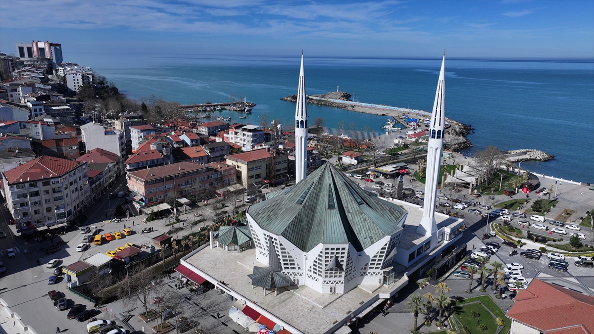 Tek benzeri Pakistan`da bulunan ve Selçuklu mimarisi ile yapılan Düzce`nin Akçakoca ilçesindeki Merkez Camii`nde Ramazan ayının ilk Cuma namazı kılındı.