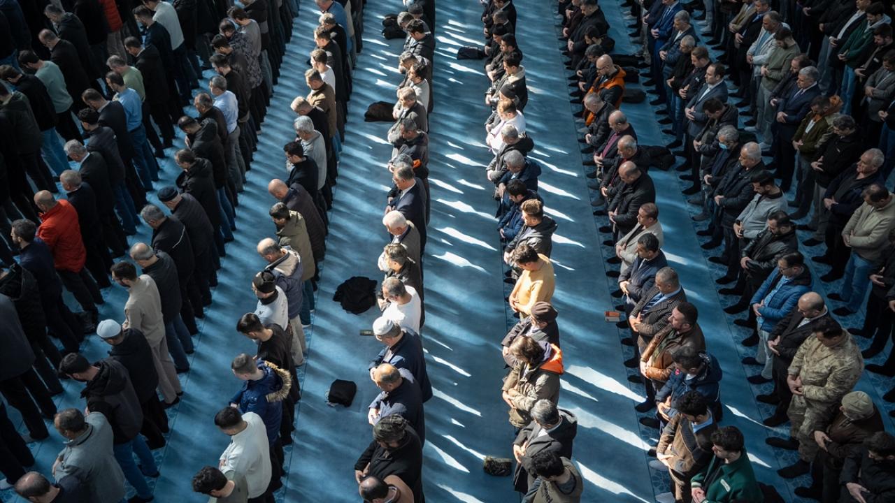 Camiye gelen vatandaşlar, cuma namazı için saf tuttu.