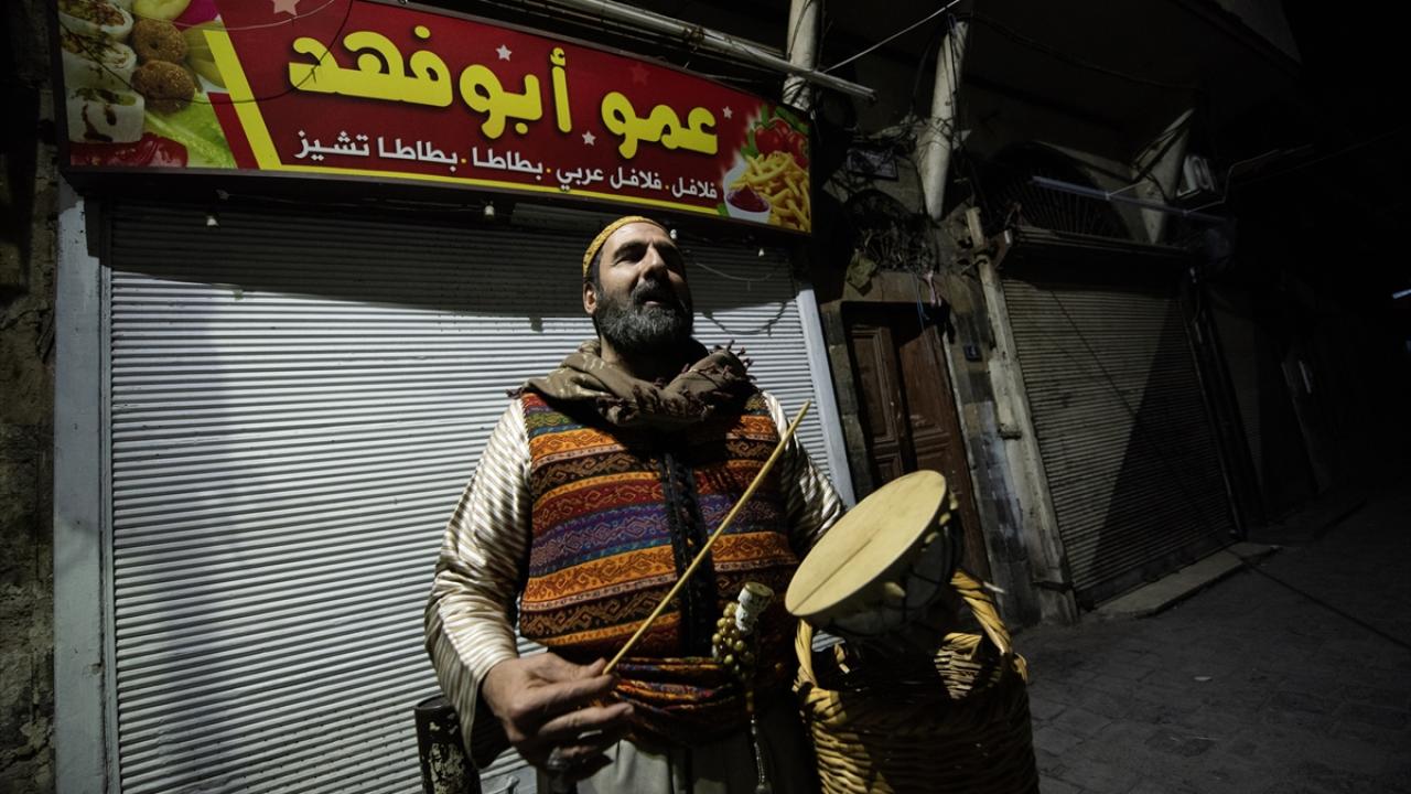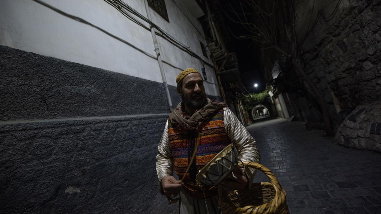 Suriye'nin başkenti Şam'da ramazan davulcusu geleneğini sürdüren davulcular, mesaiye devam ediyor.