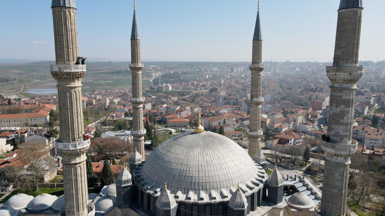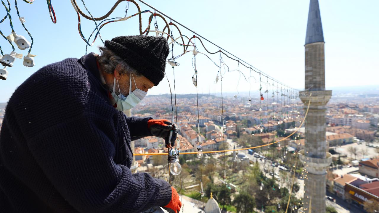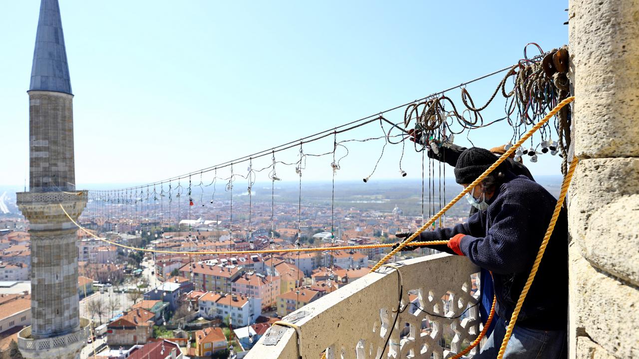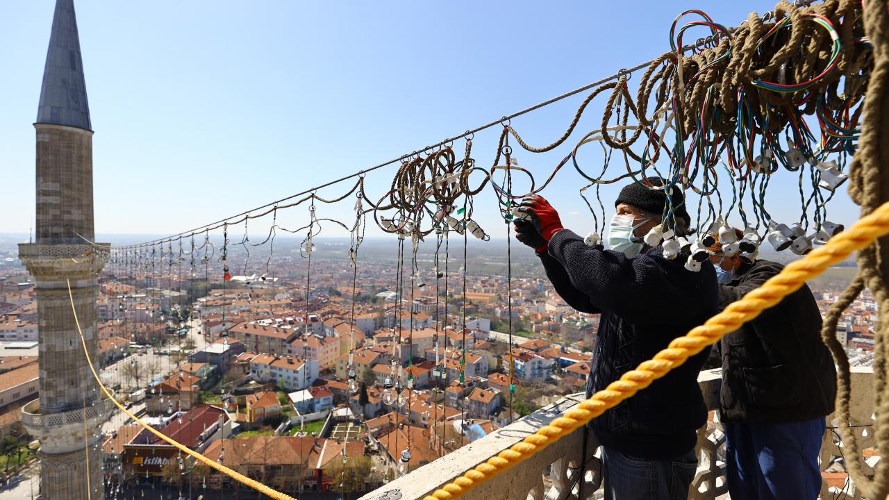Selimiye Camii minareleri ramazan mahyalarıyla donatıldı