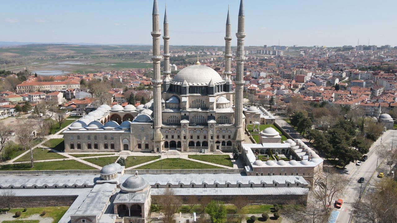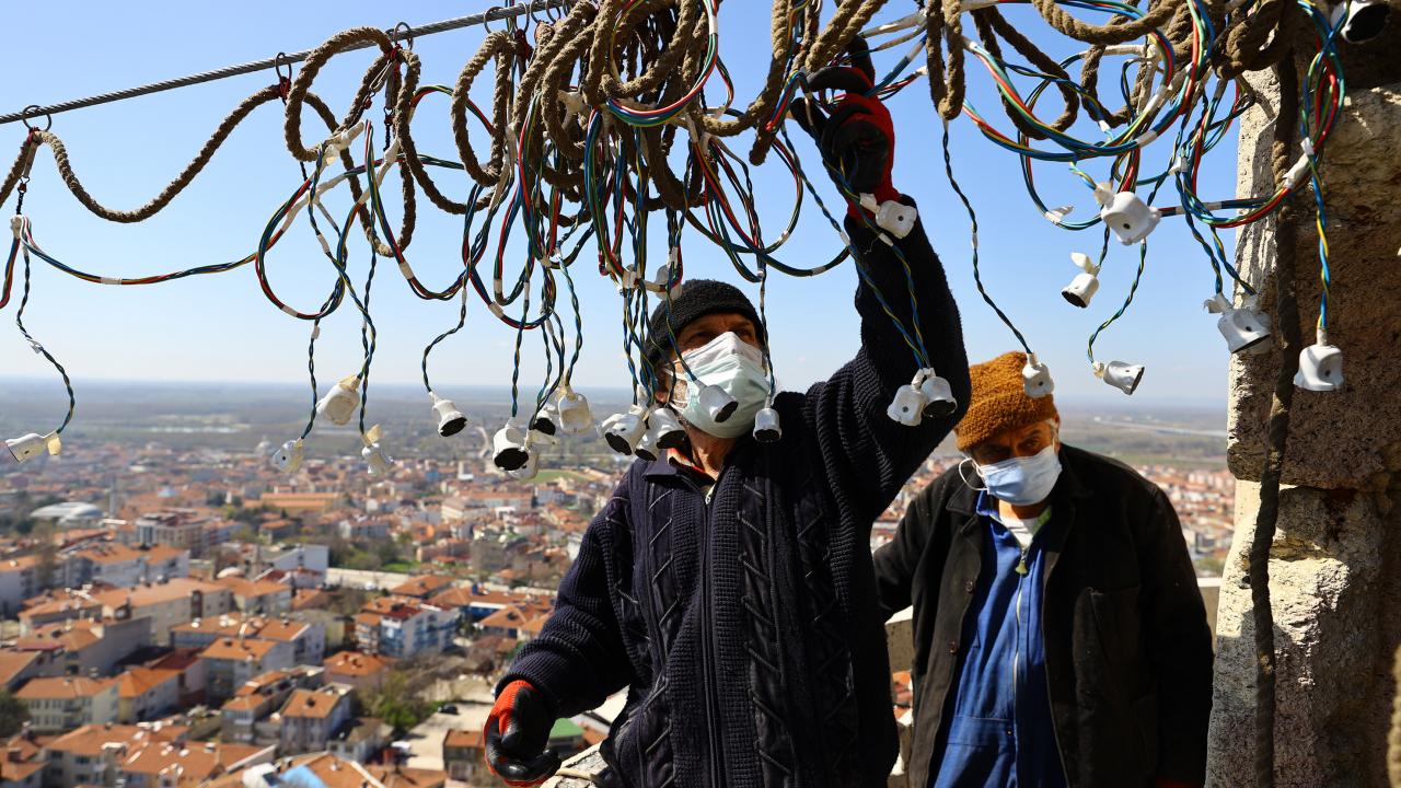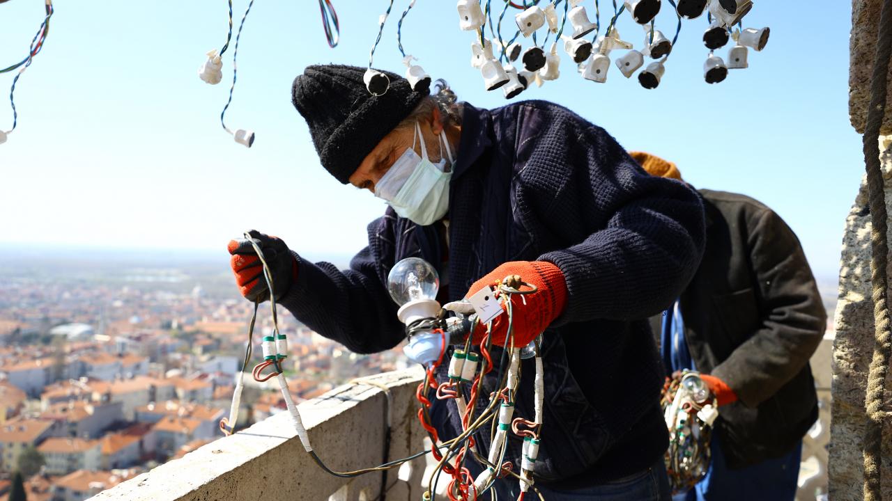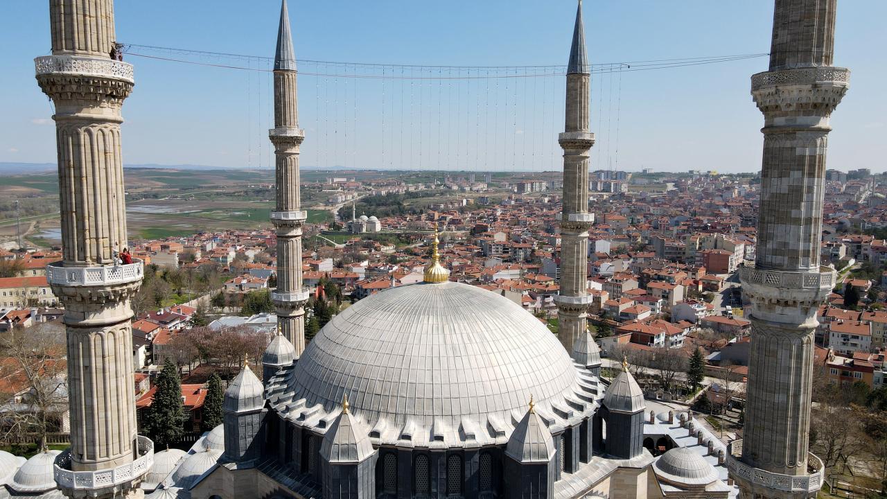 Selimiye Camii minareleri ramazan mahyalarıyla donatıldı