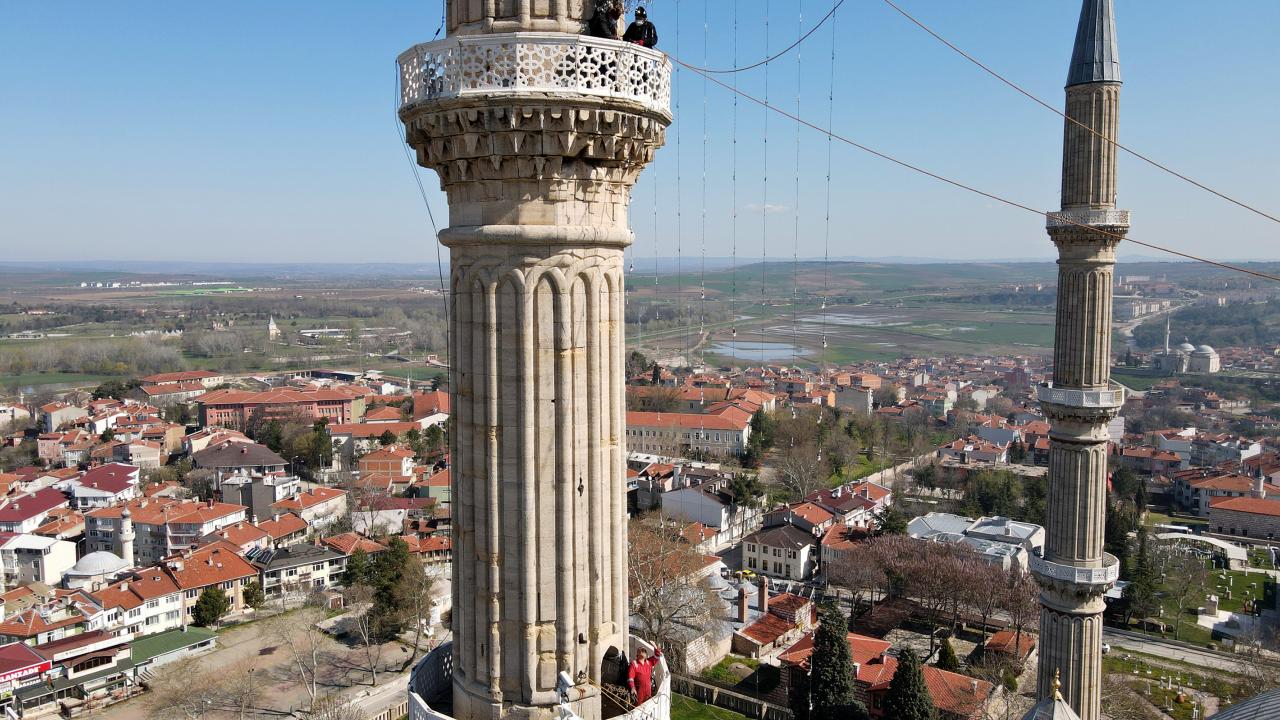 Çalışmalarını tamamlayan ustalar, diğer kentlerdeki camilerin mahyalarını asmak üzere Edirne`den ayrıldı.