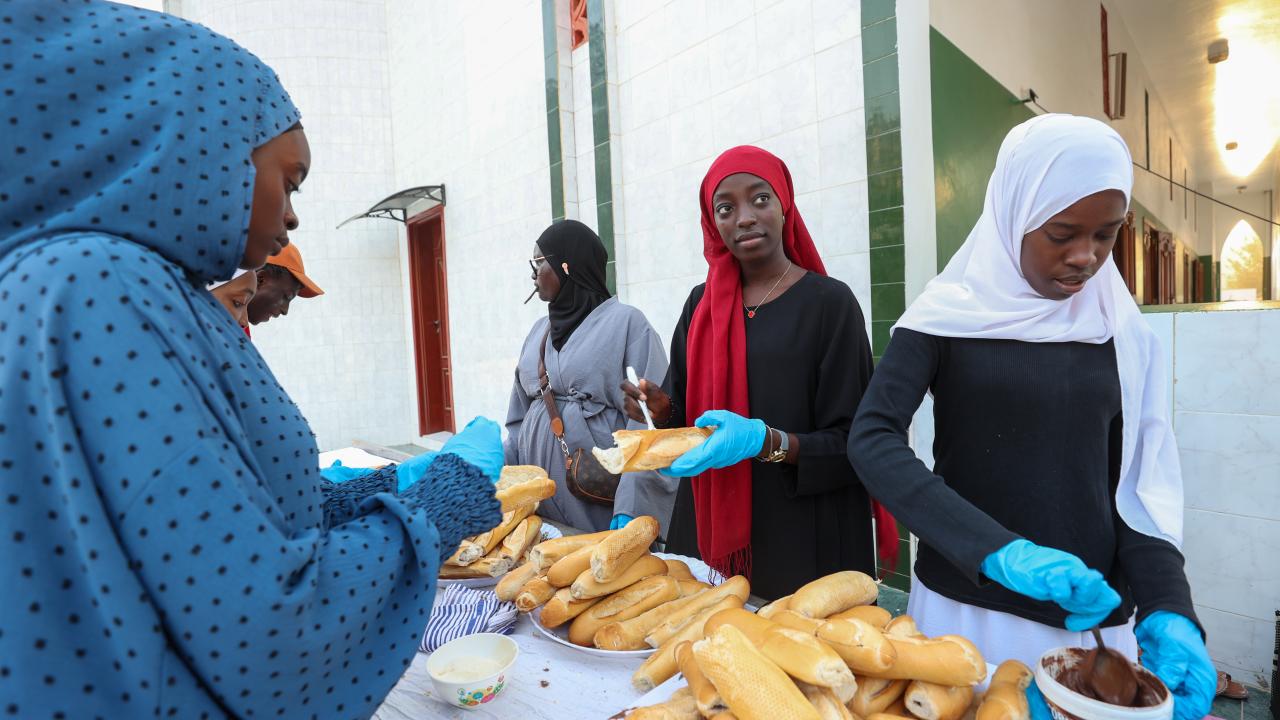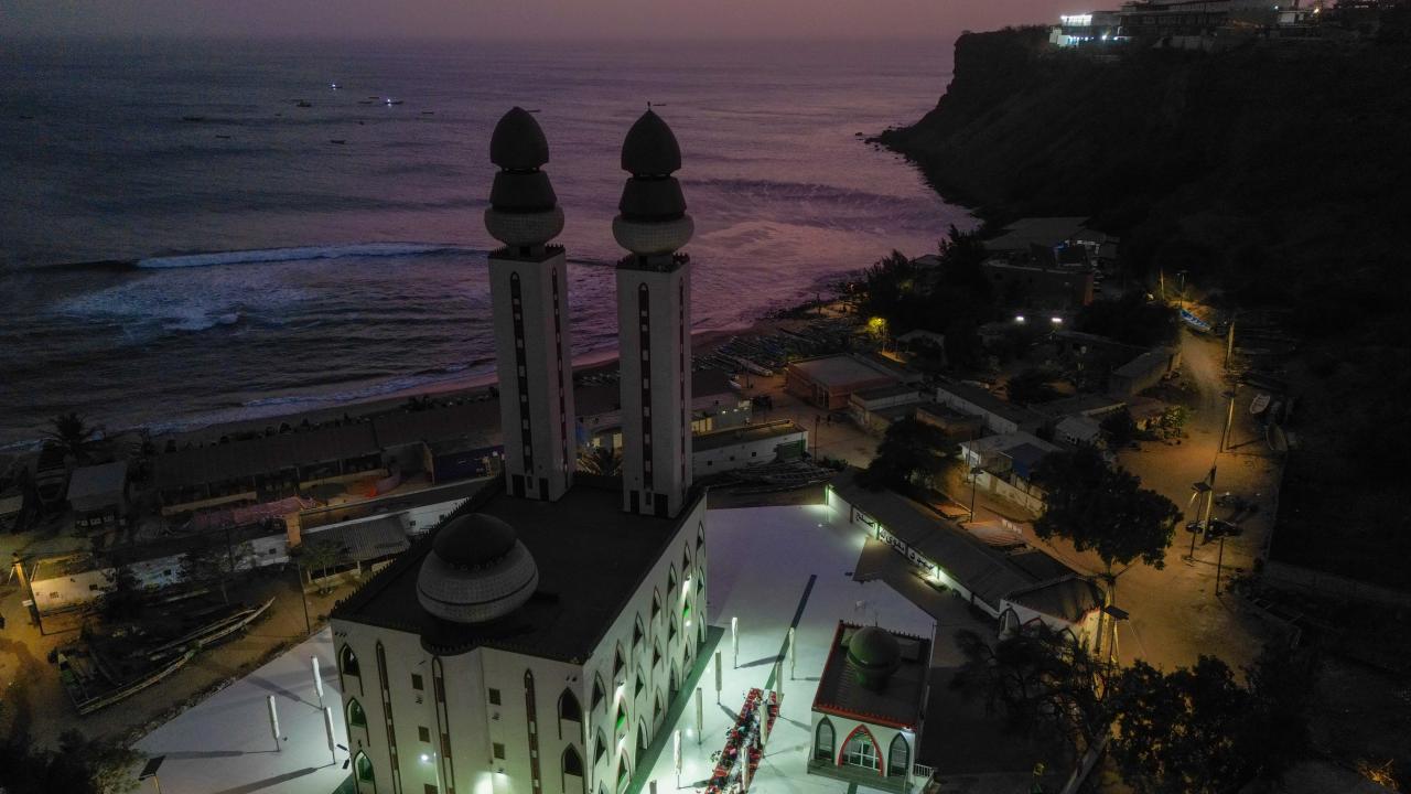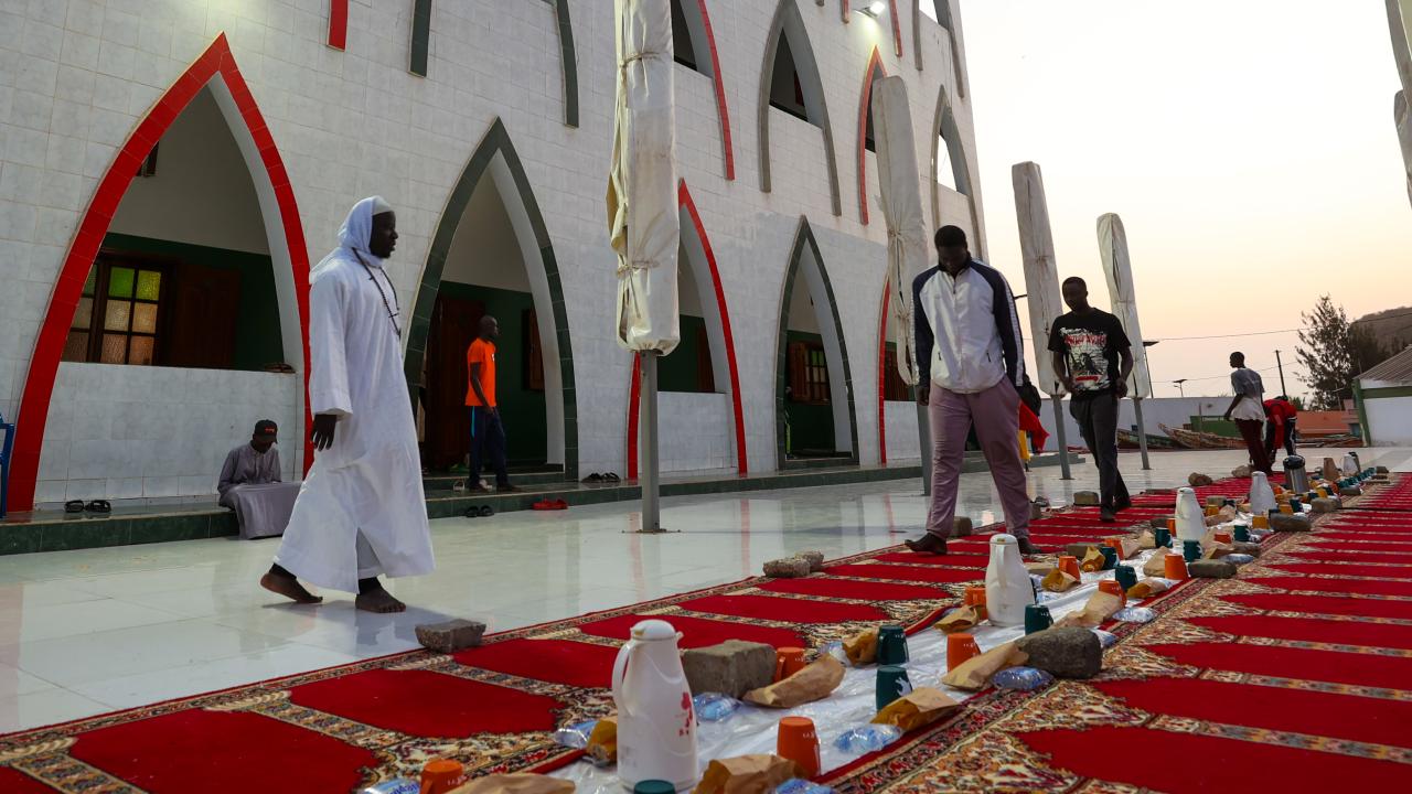 Senegal'in sembollerinden İlahiyat Camii'nde toplu iftar yapıldı. Başkent Dakar'da okyanus kenarında yer alan ve bir din aliminin rüyası üzerine inşa edilen İlahiyat Camii avlusunda iftar sofrası kuruldu.