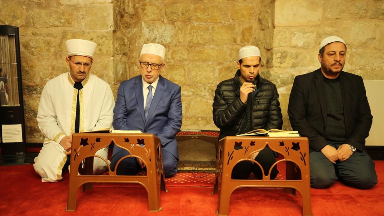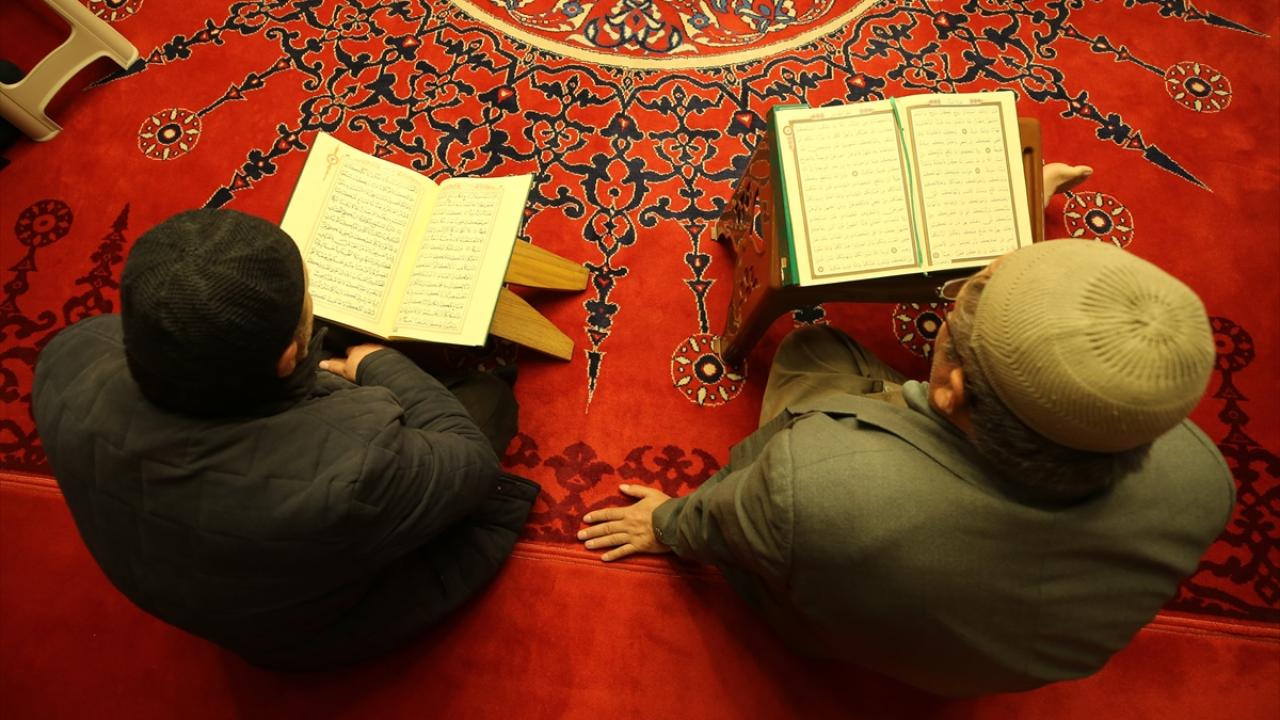 Vatandaşlar, din görevlilerinin Kur`an-ı Kerim tilavetini takip ediyor, bilmeyenler de okunan ayetleri dinliyor.