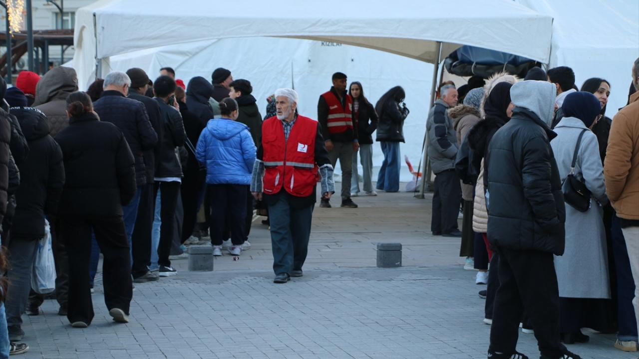 Genç Kızılay gönüllüsü Fadime Hatun Meydan ise gönüllü arkadaşlarıyla vatandaşlara hizmet etmeye çalıştıklarını kaydetti.