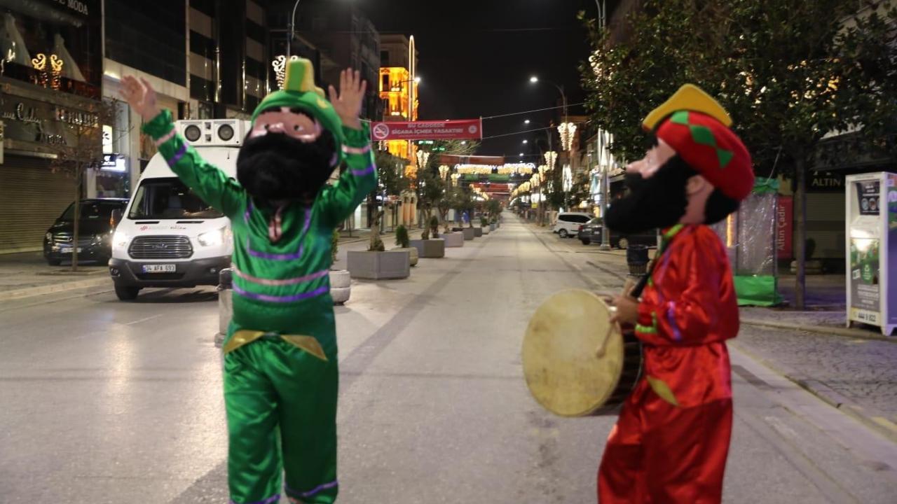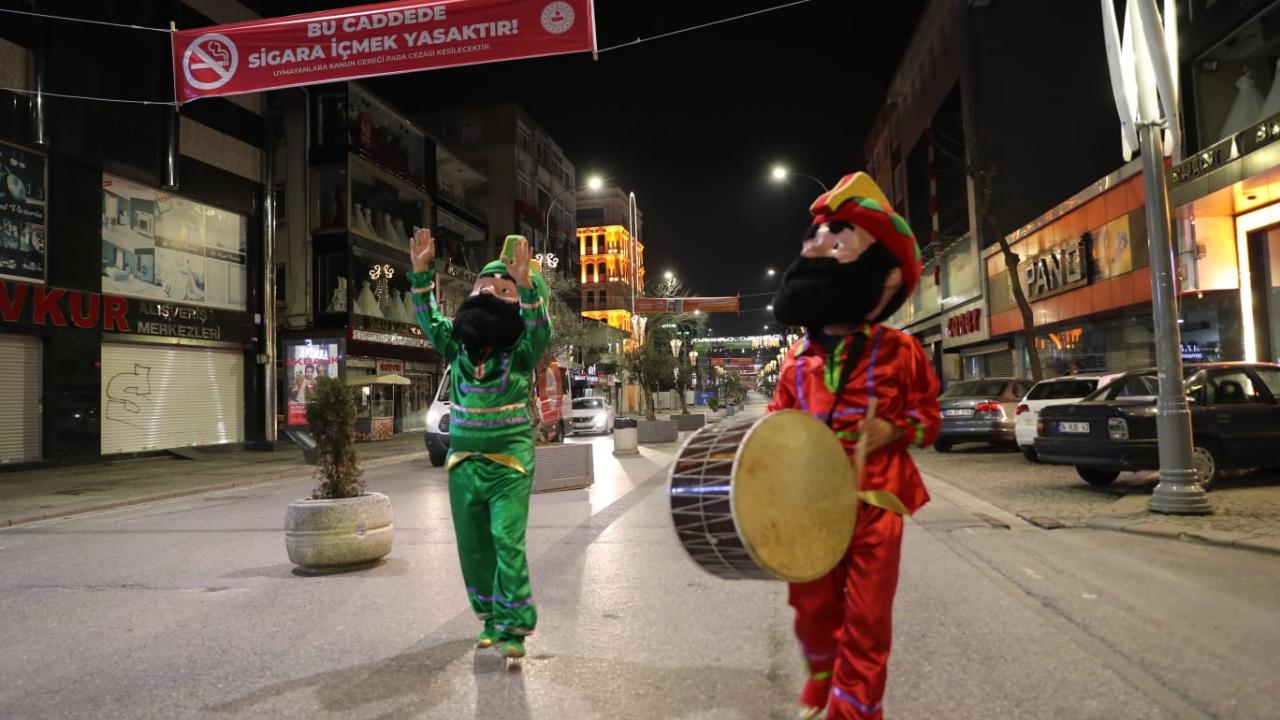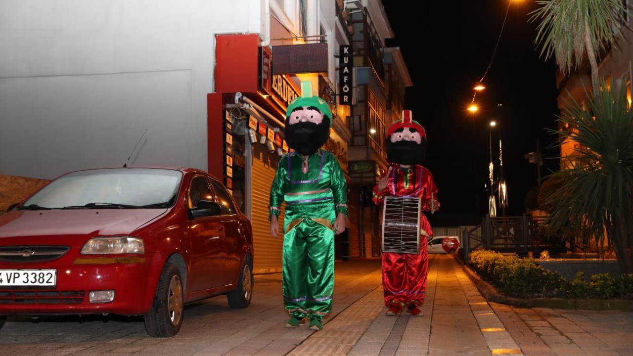 Belediyenin düzenlediği etkinlikle vatandaş ilk sahuruna ve Karagöz ve Hacivat’ın manileriyle uyandı. Hacivat ile Karagöz davul çalıp vatandaşlara maniler okudu.