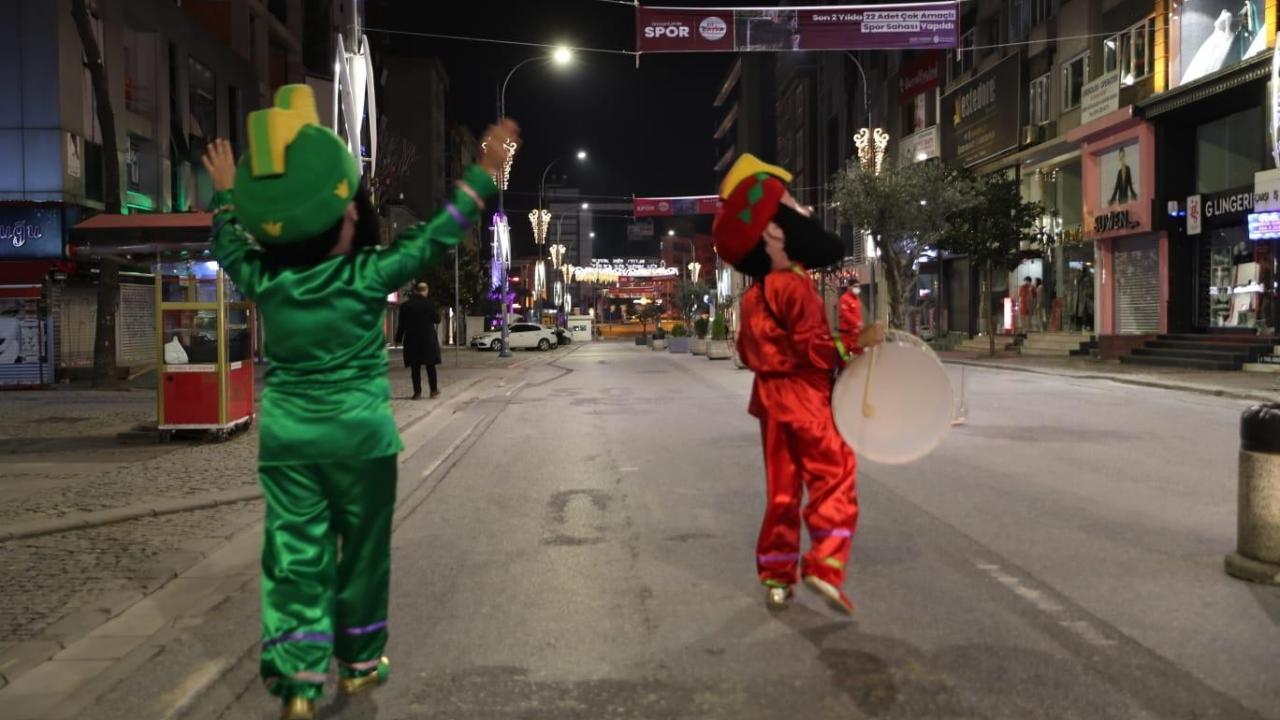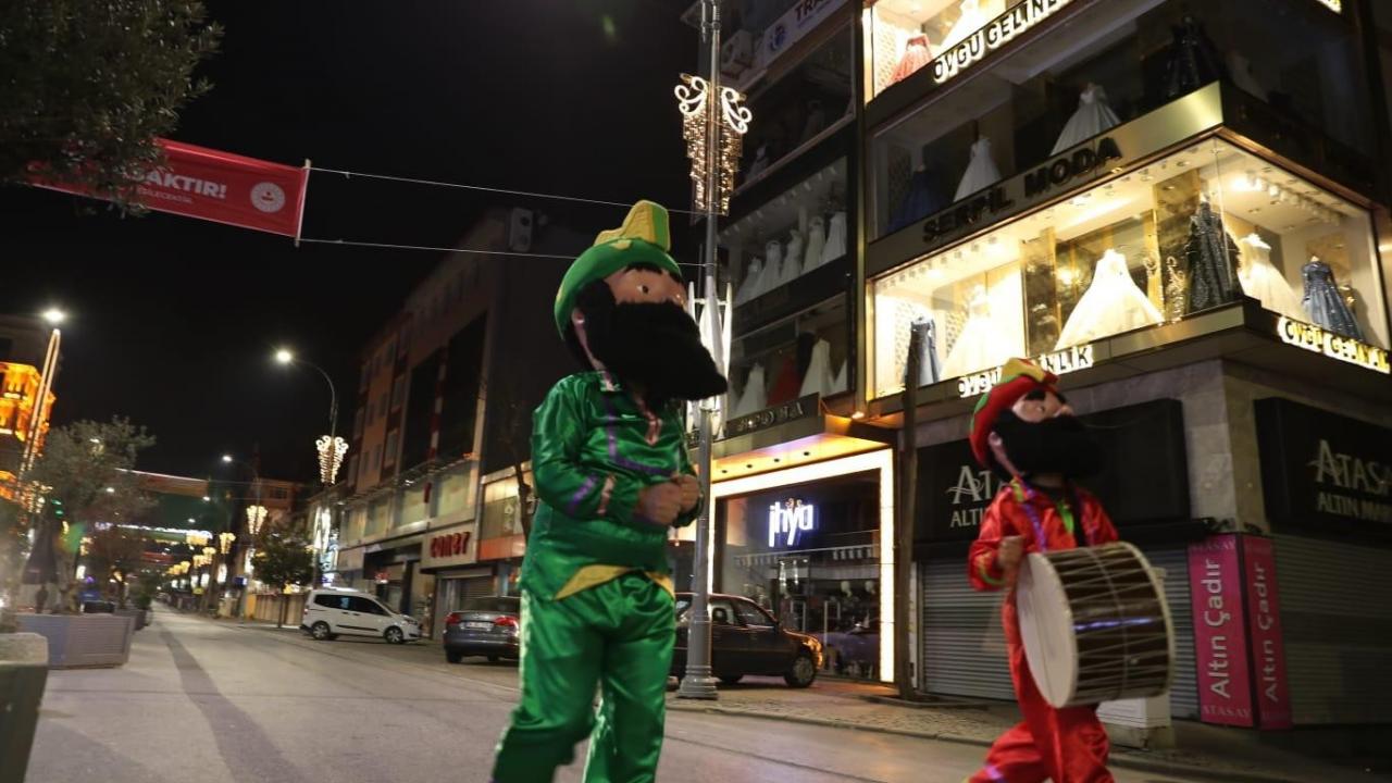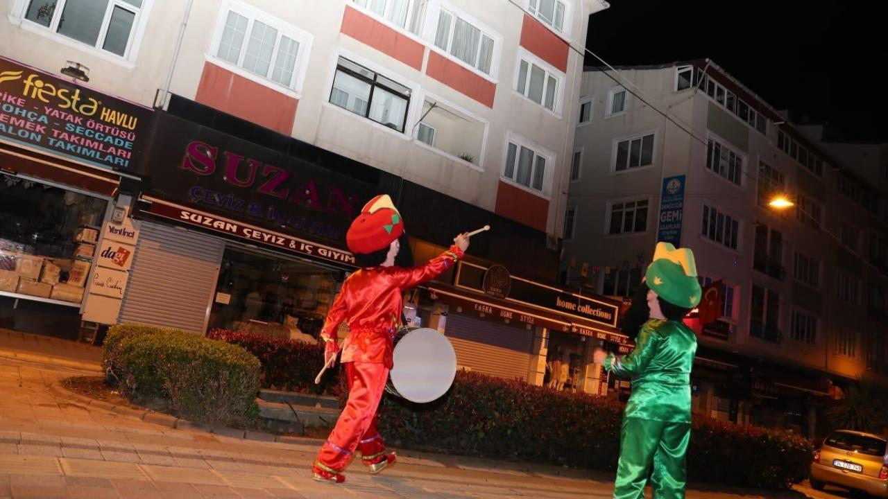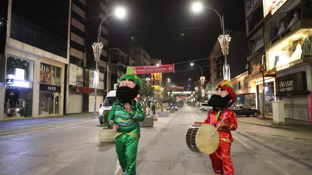 Belediyenin düzenlediği etkinlikle vatandaş ilk sahuruna ve Karagöz ve Hacivat’ın manileriyle uyandı. Hacivat ile Karagöz davul çalıp vatandaşlara maniler okudu.