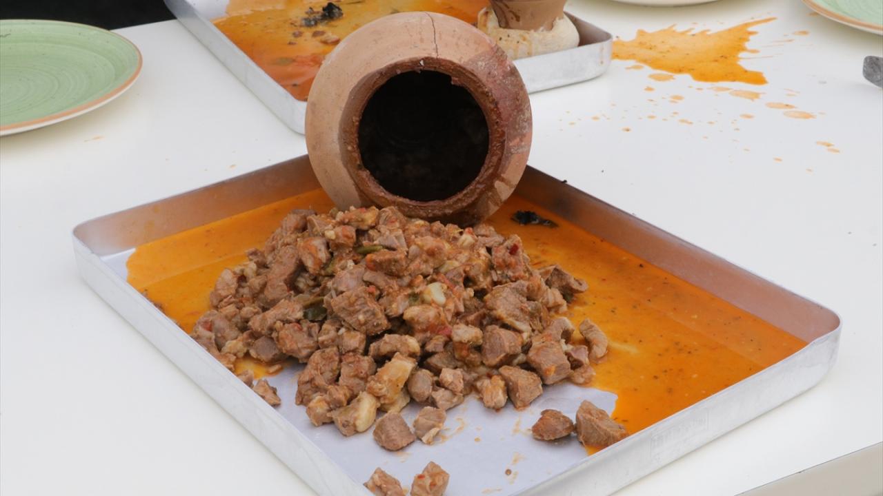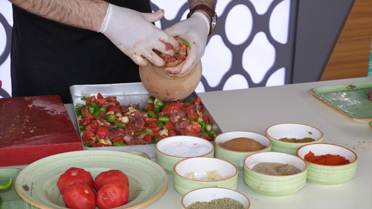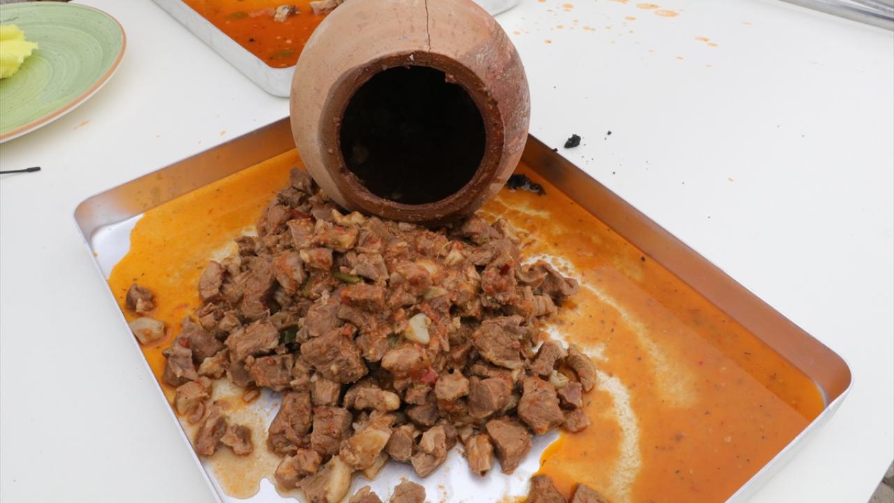 Domates, biber, kuru soğan ve baharatla harmanlanan kuzu eti, testilere konuluyor. Tereyağı ve defneyaprağı ilave edildikten sonra testinin ağzı kapatılarak kebap pişirilmeye hazır hale getiriliyor.