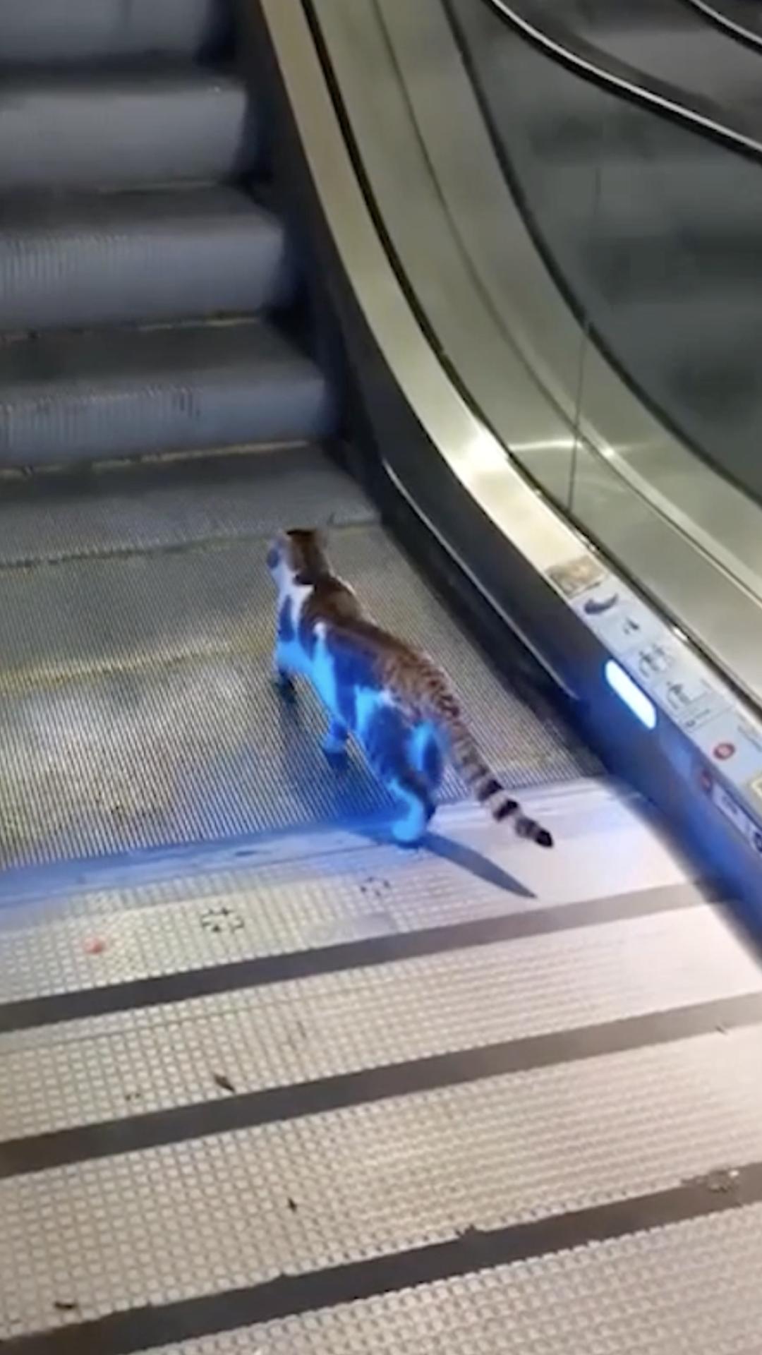 Havalimanında kedinin yürüyen merdivenle imtihanı