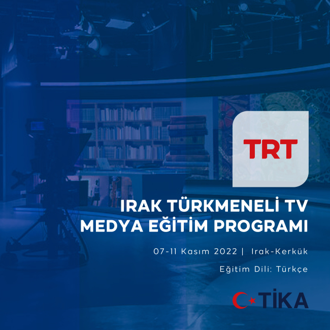 TRT ve TİKA ile iş birliği kapsamında 7-11 Kasım tarihleri arasında Irak Türkmeneli TV personeli ile bir araya geliyor. Kerkük’te düzenlenecek “Medya Eğitim Programı”nda 5 gün boyunca alanında uzman TRT personeli, Irak’ta görev yapan meslektaşları ile tecrübe paylaşımında bulunacak.