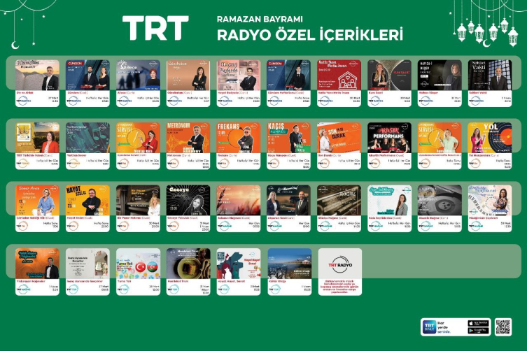 TRT Radyoları, Ramazan Bayramı süresince özel içerik ve programlarla dinleyicisi ile olacak. TRT Radyoları’nda ve TRT bölge radyolarında Ramazan Bayramı’nın dini ve milli anlamdaki önemi dinleyici ile paylaşılacak.