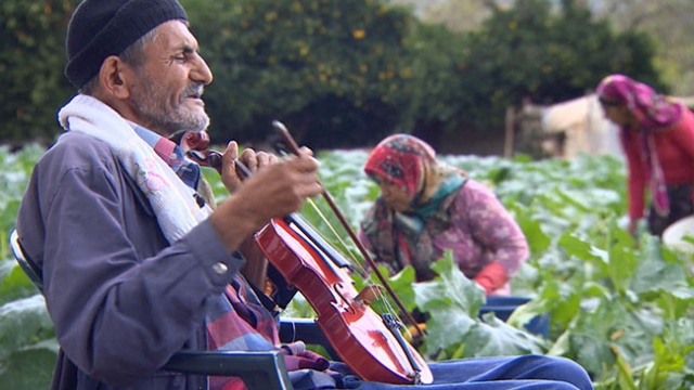 Antalya'nın Serik ilçesinde yaşayan 67 yaşındaki Mehmet Nazlı'nın hayattaki en büyük dostu kemanı.