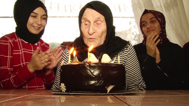 107 yaşındaki Hamide nineye öğrencilerden sürpriz doğum günü