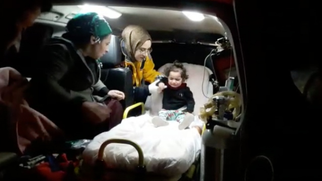 Siirt'in Pervari ilçesinde etkili olan kar yağışı ilçeye bağlı Doğan köyü yolunu ulaşıma kapatırken, yüksek ateşten dolayı havale geçiren 2 yaşındaki Berivan Bulut, İl Özel İdaresi ekipleri tarafından kurtarıldı.