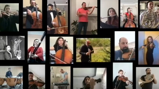 Balkan Senfoni Orkestrası üyeleri, Meclis'in açılışının 100. yılı için evlerinden İstiklal Marşı'nı seslendirdi.