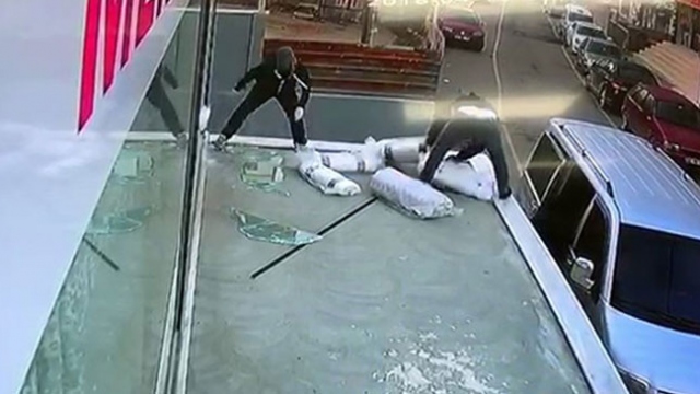 İstanbul Pendik'te bir iş yerine gelen 3 hırsız, güpegündüz büyük demir kesme makası ile kırdıkları camdan yaklaşık 45 bin lira değerindeki tülleri çalarak kayıplara karıştı.