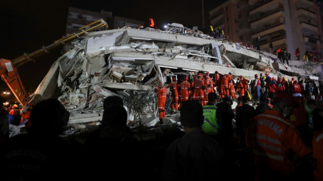 İzmir'de enkaza dönen binalar havadan görüntülendi