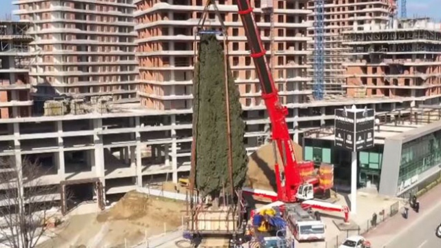 Bursa'da inşaat alanının ortasında kalan 55 yıllık servi ağacının yeri değiştirildi. Bir hafta süren çalışmayla ağaç kesilmekten kurtarıldı.