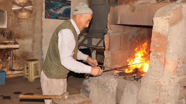 işini bırakmıyor. Özdolar, ocakta ısıtıp bilek gücüyle döverek şekil verdiği çelikten balta, nacak, satır ve kazma yapıyor.