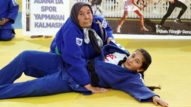 Adana’da yaşayan 80 yaşındaki Ayten Alataş, torununu spor salonuna götürürken savunma sporu olduğunu öğrendiği judoya merak sardı ve antrenmanlara başladı.