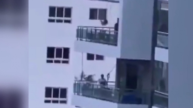 Dünyayı etkisi altına alan koronavirüs (Covid-19) salgını nedeniyle karantina uygulanan Porto Riko’da bir baba çocuğu için 8'inci kattaki balkona salıncak kurdu.