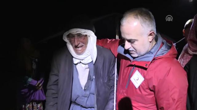 Türk Kızılayı Genel Başkanı Kerem Kınık yılbaşı gecesi, Kızılay tarafından kurulan kampta iç savaş mağdurlarıyla biraraya geldi. 97 yaşındaki bir Suriyeli, Kınık'ı görünce gözyaşlarını tutamadı.