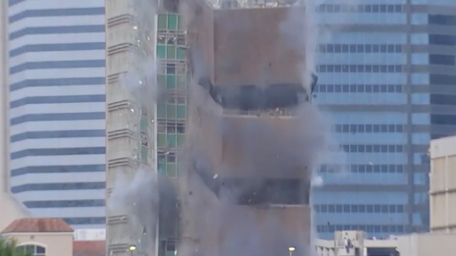 ABD'nin Florida eyaletinde 15 katlı bina kontrollü olarak yıkıldı. Yıkımın ardından etrafı yoğun bir toz bulutu kapladı.
