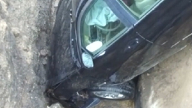 ABD'de 16 yaşındaki acemi bir sürücü, arabasıyla yoğun yağışlardan ötürü yolda açılan derin obruğa düştü. Genç sürücü olaydan burnu bile kanamadan kurtuldu