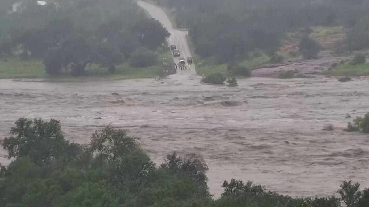 Selin vurduğu ABD'nin Texas eyaletinde, bir geçidin su altında kaldığı anlar kameraya yansıdı.