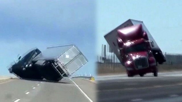 ABD'de şiddetli rüzgar: Seyir halindeki tırlar devrildi
