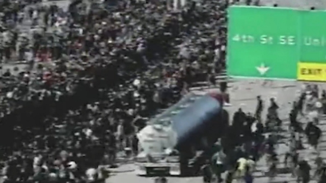 ABD'de polis müdahalesi sonucu hayatını kaybeden siyahi George Floyd için düzenlenen protestolarda, otoyolda toplanan göstericilerin arasına tır daldı. Sürücü, araçtan çıkarılarak darp edildi.