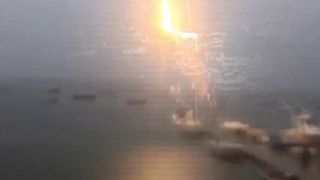 ABD'de etkili olan fırtınada, limanda demirlemiş bir tekneye yıldırım düştü. O anlar saniye saniye kaydedildi.