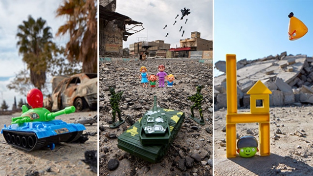 ABD'li fotoğrafçı Brian McCarty, çocukların yaşadığı savaş dehşetini, onların çizdiği resimleri fotoğraflayarak gösteriyor. Bunu da oyuncak kullanarak yapıyor.
