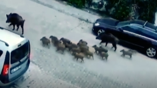 Muğla'nın Marmaris ilçesinde, aç kalan domuz sürüsü sokaklarda görüntülendi.