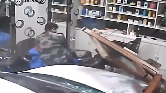 Çin’de acemi kadın sürücü, fren yerine gaza basınca berber dükkanına daldı. Güvenlik kamerasınca kaydedilen görüntülerde, berberin ve o sırada müşterisi olan küçük çocuğun şaşkınlığı saniye saniye kaydedildi.
