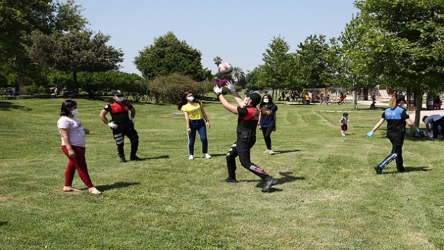 Adana'da polis, koronavirüs önlemleri kapsamında bugün sokağa çıkmalarına izin verilen 14 yaş ve altı çocuklarla oyun oynadı.