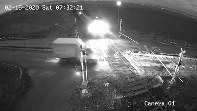 Afyonkarahisar'da, 15 Şubat'ta, hemzemin geçitten bariyerler kapalıyken geçmeye çalışan ekmek yüklü kamyonete yük treni çarptı. Kamyonet sürücüsünün hayatını kaybettiği kazanın güvenlik kamerası görüntüleri ortaya çıktı.
