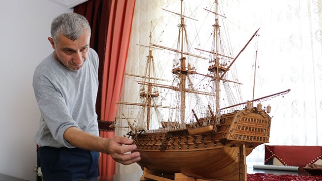 Zonguldak'ta yaşayan Ahmet Ali Yazıcı, birçok farklı ağaçtan aldığı parçaları bir araya getirerek, onları tarihi savaş gemisi maketlerine dönüştürüyor.