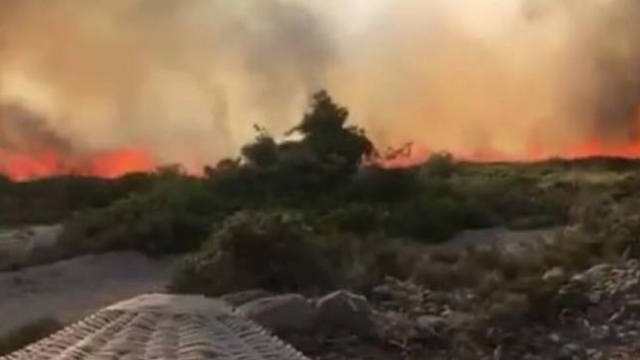 İzmir'in Çeşme ilçesinin turistik mahallesi Alaçatı'da, otluk ve makilik alanda yangın çıktı.