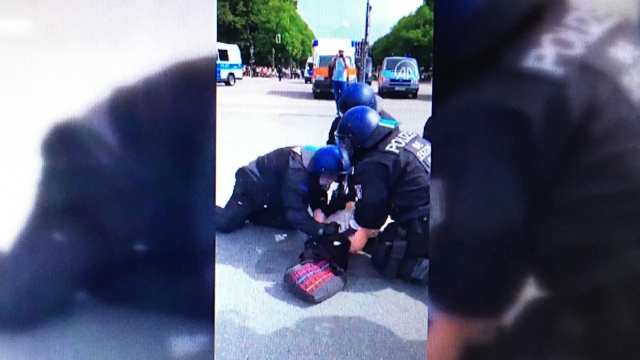 Almanya'da polis kadın protestocuyu yumrukladı