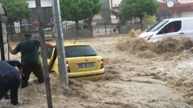 Ankara Mamak'ta aniden bastıran yağmur sonrası yollar göle döndü, araçlar sürüklendi. Sürücüler araçlarını kurtarmak yoğun çaba sarf etti.