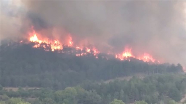 Ankara'nın Nallıhan ilçesi Beyalan Mahallesi Bürmece mevkisinde çıkan orman yangınına müdahale ediliyor.