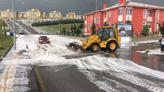 Ankara'da sağanak yağışın ardından gelen dolu, başkent sokaklarını beyaza bürüdü.