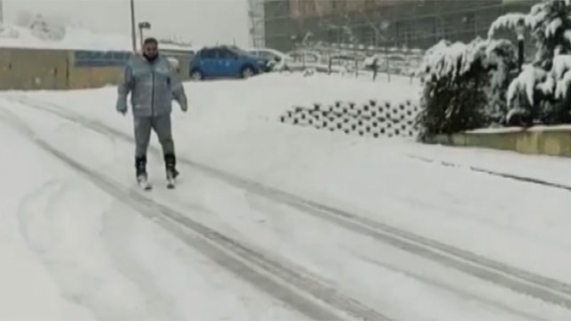 Ankara'da gün boyu süren kar yağışı ilginç görüntülere sahne oldu.