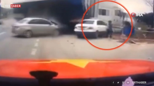 Vietnam'da anne ve kucağındaki bebeği tırın altında kalmaktan son anda kurtuldu.