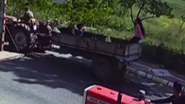 Nevşehir'de hareket halindeki traktörün kasasında ayakta duran küçük kızın düşmesi, bir iş yerinin güvenlik kameraları tarafından kaydedildi.