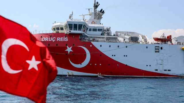 Antalya polisi Oruç Reis'i selamladı