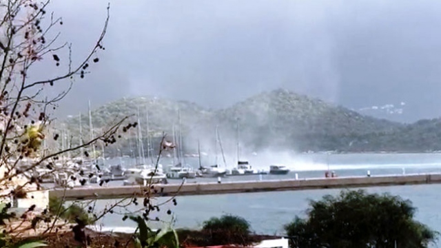 Antalya’nın Kaş ilçesinde çıkan hortum, marinadaki teknelerin halatını kopardı. O anlar kameralara yansıdı.