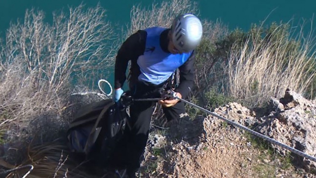 Antalya'da falezlerde çevre temizliği yapıldı. Gönüllü dağcılar ip yardımıyla indikleri falezlerde, metrelerce yükseklikte 300 torba çöp topladı.