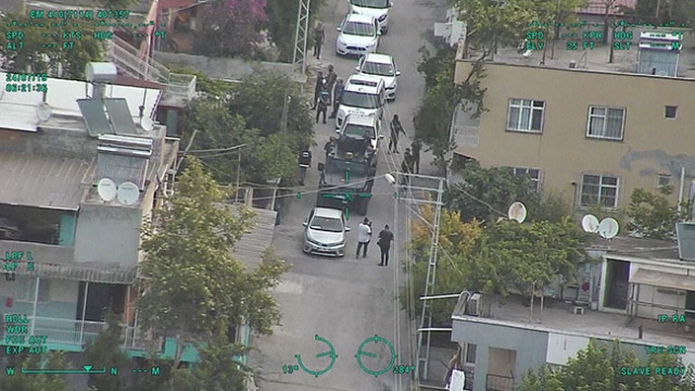 Adana'da asayiş ve narkotik suçlarından kesinleşmiş hapis cezası olan hükümlüler ile haklarında arama kaydı bulunan 44 kişinin yakalandığı operasyon, polis helikopteri tarafından görüntülendi.